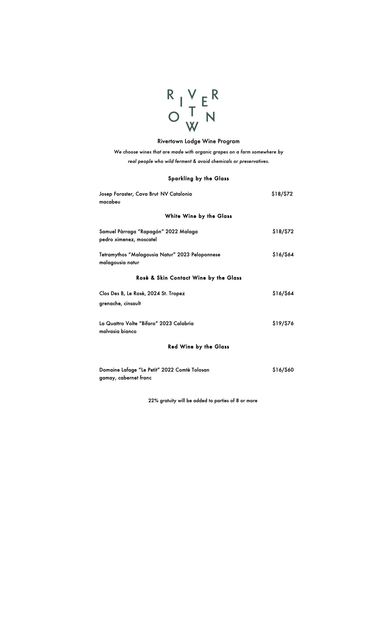 Drinks Wines By the GlassSparkling & White Wines By The BottleRed Wines By The BottleSpecialty Cocktails & MocktailsLocal Beers DINNER MENUBRUNCH MENU BOOK A TABLE